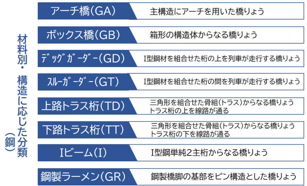 この記事では、鉄道橋りょうの種類、またそれらの略記号(略号)について解説しました。